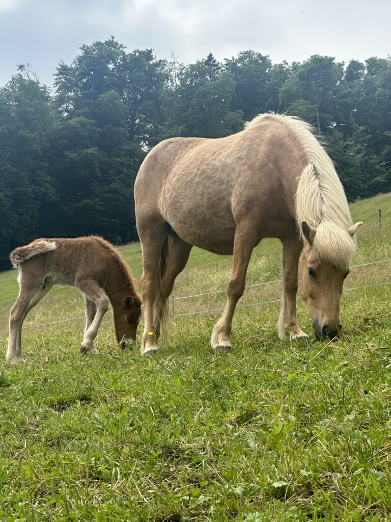 Lýsa ist mein Privatpferd und wird nur selten für Reitstunden eingesetzt. Da sie ihr erstes Fohlen Loki im Frühling 2025 bekommen hat, ist sie im Moment in den Ferien.